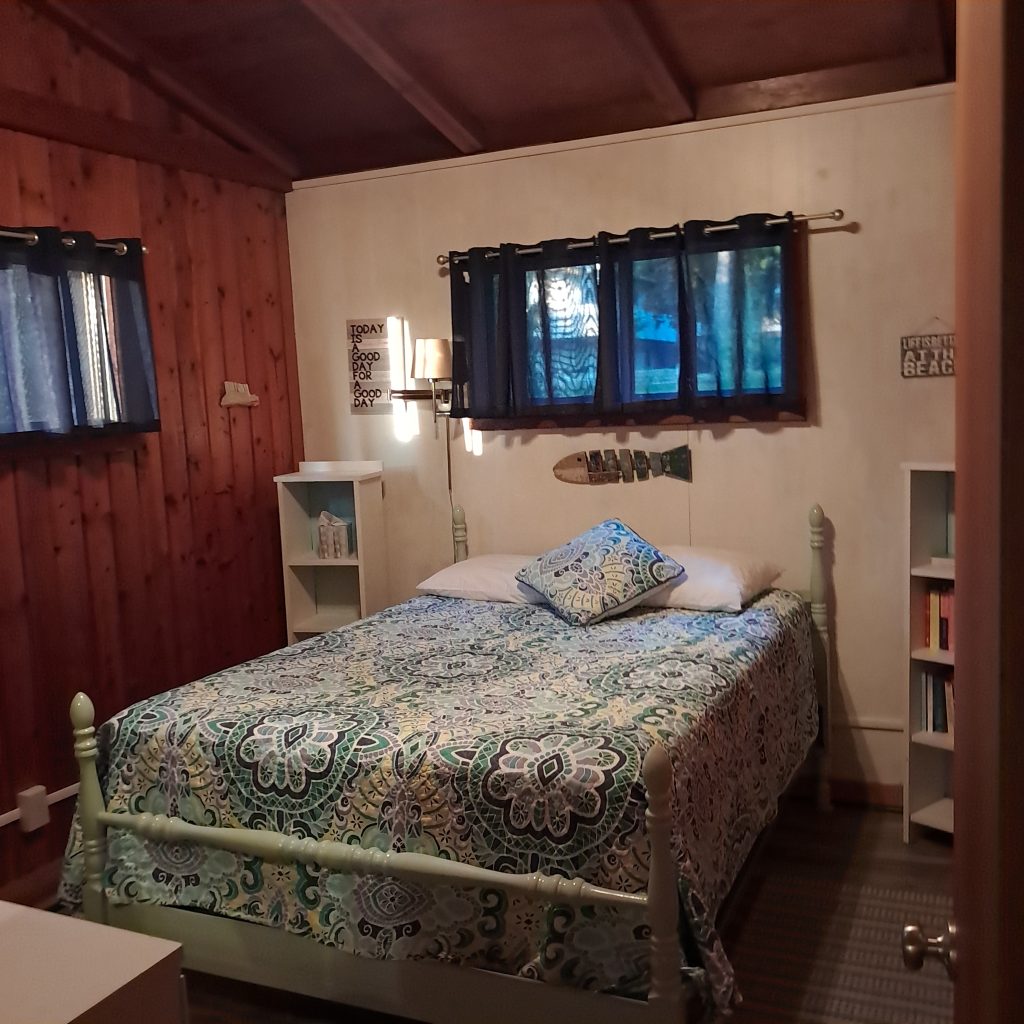 Each cottage has 2 bedrooms; a full bed and a single and bunk. All cottages are fully equipped with cooking supplies. Bring your own linens and towels.